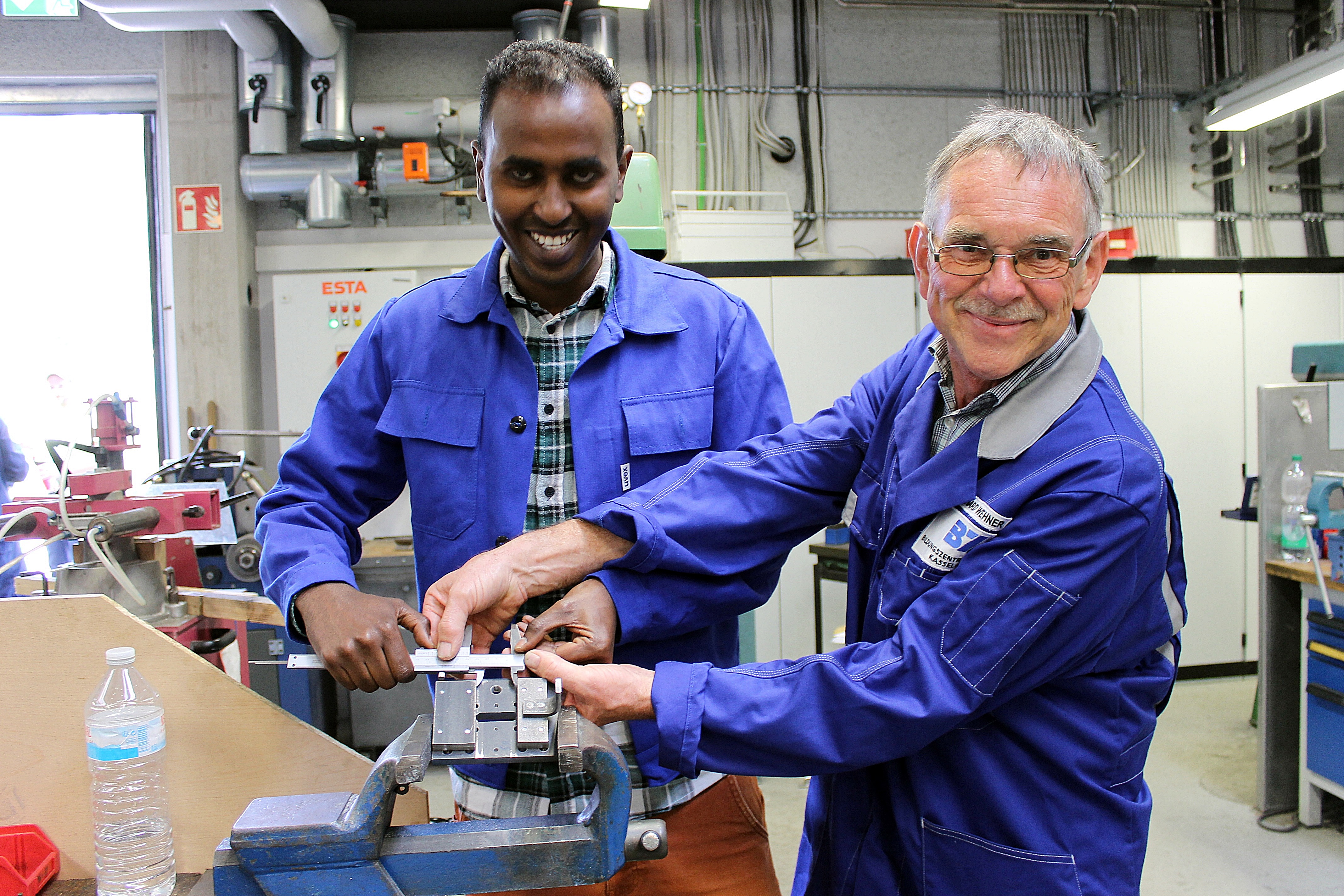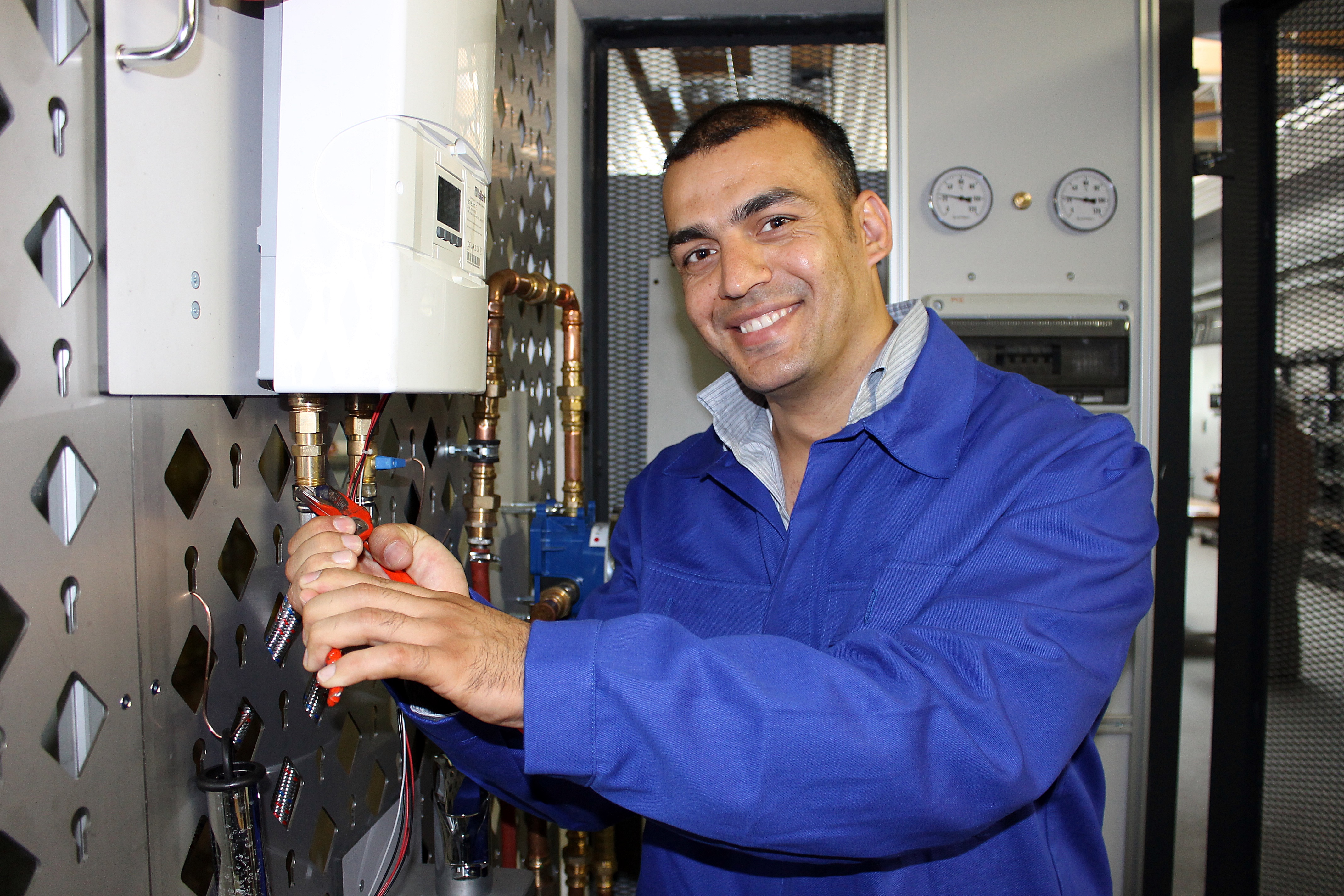 Der 25jährige Mohammad Rafi Seddiqhi kam vor 10 Monaten alleine aus Afghanistan nach Deutschland. Seddiqhi hatte in seiner Heimat angefangen, Wirtschaft zu studieren, dann musste er fliehen. Im BZ Kassel lernte er im Rahmen der Berufsorientierung die Bereiche Schweißen, Metallbau, Elektrotechnik sowie den Bereich Heizung-, Sanitär und Klimatechnik kennen. Letzterer gefiel ihm so gut, dass er jetzt eine Ausbildung als Anlagenmechaniker für Heizung-, Sanitär und Klimatechnik anstrebt. Gerade arbeitet er bei der Firma Gruhn in Kassel zur Probe, dem soll sich eine „Einstiegsqualifizierung (EQ)“-Maßnahme anschließen. Ziel ist es, mit dem Betrieb einen Ausbildungsvertrag abzuschließen.
