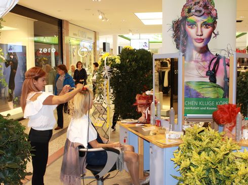 Spannende Aktionen luden zum Staunen und Mitmachen in der Einkaufspassage ein: Das Friseur- und Kosmetik-Team, samt Umschülerinnen vom Bildungszentrum Kassel, präsentierte Braut-, Ball- und Hochsteckfrisuren mit passendem Make-up. Außerdem waren die Frisuren zum Thema Fantasy ein echter Hingucker. Auch für Männer war etwas dabei: Wer spontan vorbeischaute bekam vom Tanino Babershop eine Rasur nach Wunsch.