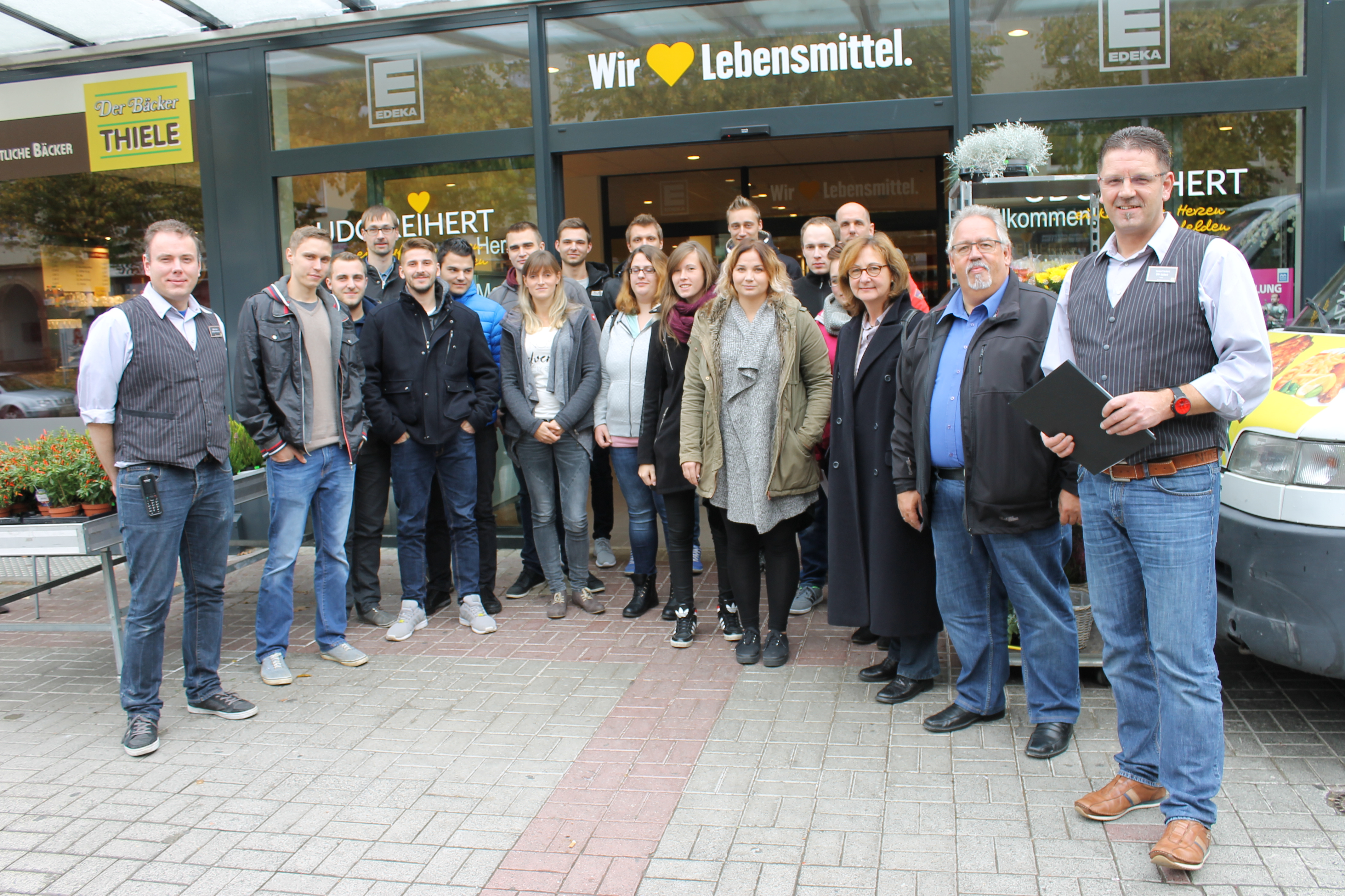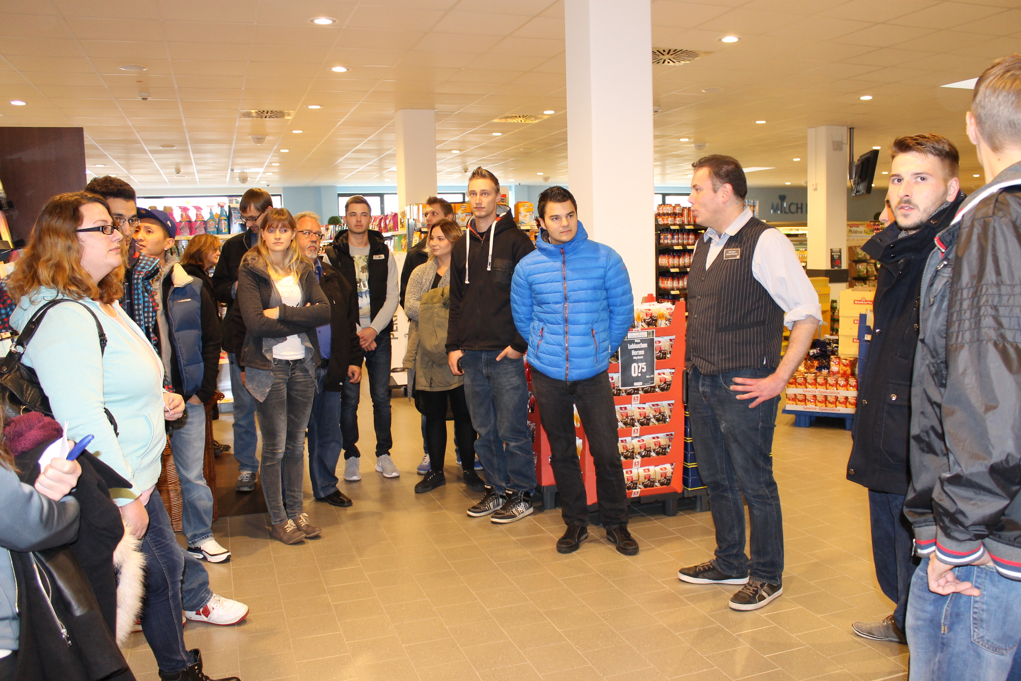 Der EDEKA-Markt Reihert wurde nach einem millionenschweren Umbau im Juli 2015 wiedereröffnet. Auf 2.700 qm finden die Kunden nun 30.000 Artikel, davon 3.000 Bioartikel. Den Lehrgangsteilnehmern gefällt die Platzierung der Artikel, beispielsweise wie das Obst in handgeflochtenen Körben präsentiert wird. Marktleiter Christian Fresenius, der die Gruppe durch den Markt führt, beantwortet ihre Fragen: „Ist der Umsatz seit der Wiedereröffnung gestiegen? Nehmen die Kunden das größere Sortiment an? Laufen auch die Bioprodukte?“ Alles kann Christian Fresenius mit einem eindeutigen „Ja“ beantworten.