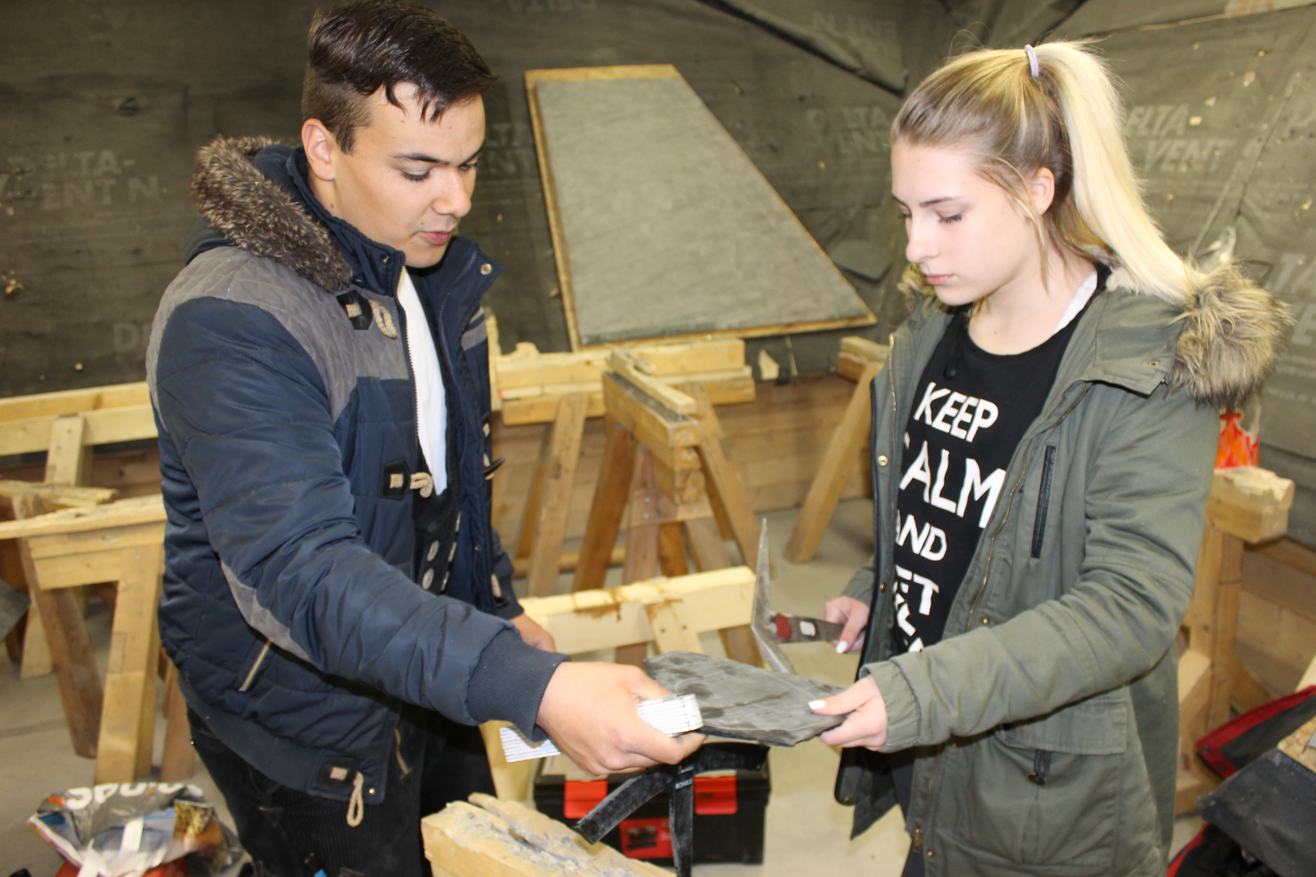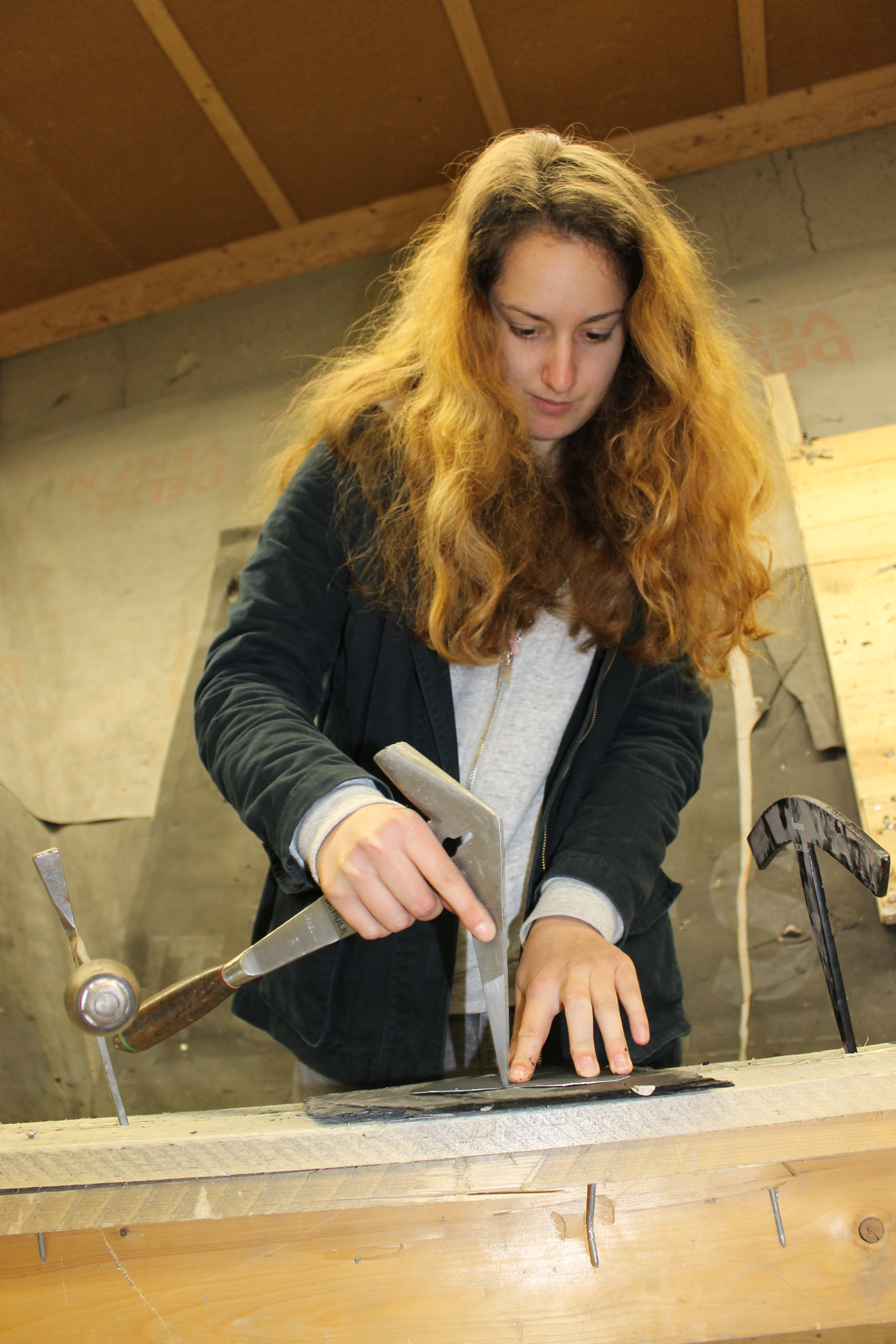 Die Mädchen erfahren eine Menge an diesem Vormittag. Zum Beispiel, dass es die Schieferdeckung seit über 400 Jahren gibt und dass die Halterung, auf der der Schieferstein platziert wird, Haubrücke heißt. Auch das Löten von Dachrinnen gehört zu den Aufgaben eines Dachdeckers. Beim Löten der Nähte bei 400 Grad Celsius dürfen die Mädchen natürlich nur zuschauen und nicht selbst anpacken, doch alle verfolgen die Handgriffe von Marion Mecke gespannt.