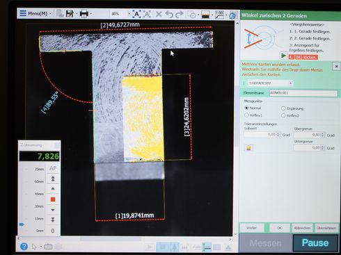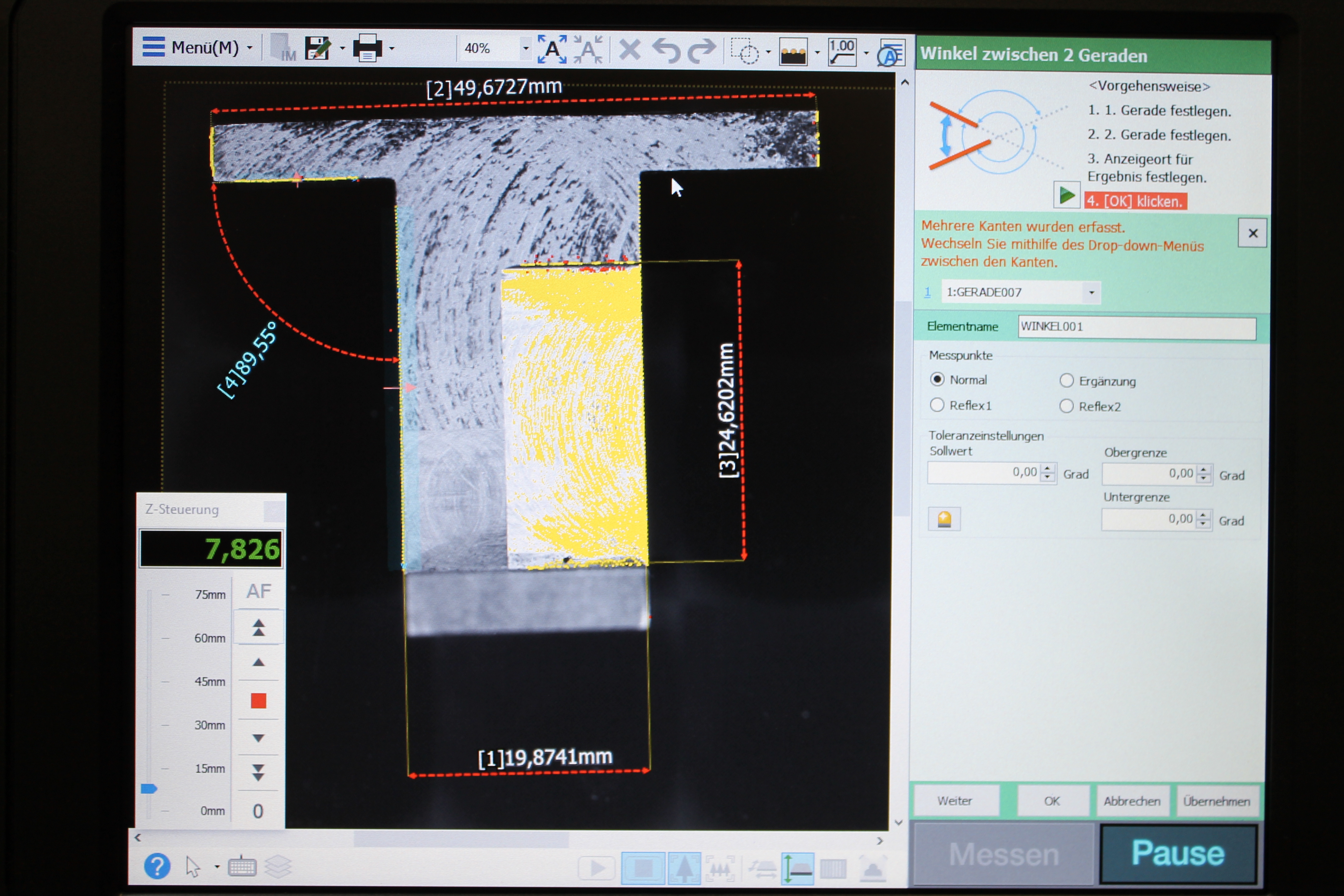 Die Vermessung von Werkstücken ist im BZ in der Metallwerkstatt jetzt wesentlich schneller und noch präziser möglich. Mit dem neuen digitalen Messprojektor und dem 3D-Koordinatenmessgerät lassen sich jetzt auch komplexe Bauteile auf den tausendstel Millimeter genau mit wenigen Klicks digital vermessen. Kantenlängen, Abschrägungen und Winkel sind so in kürzester Zeit überprüfbar. So bekommen die Teilnehmenden unmittelbar ein Feedback zu ihren Arbeiten, können Anpassungen am Werkstück vornehmen und Materialveränderungen dank der intuitiven Benutzeroberfläche sofort nachvollziehen.