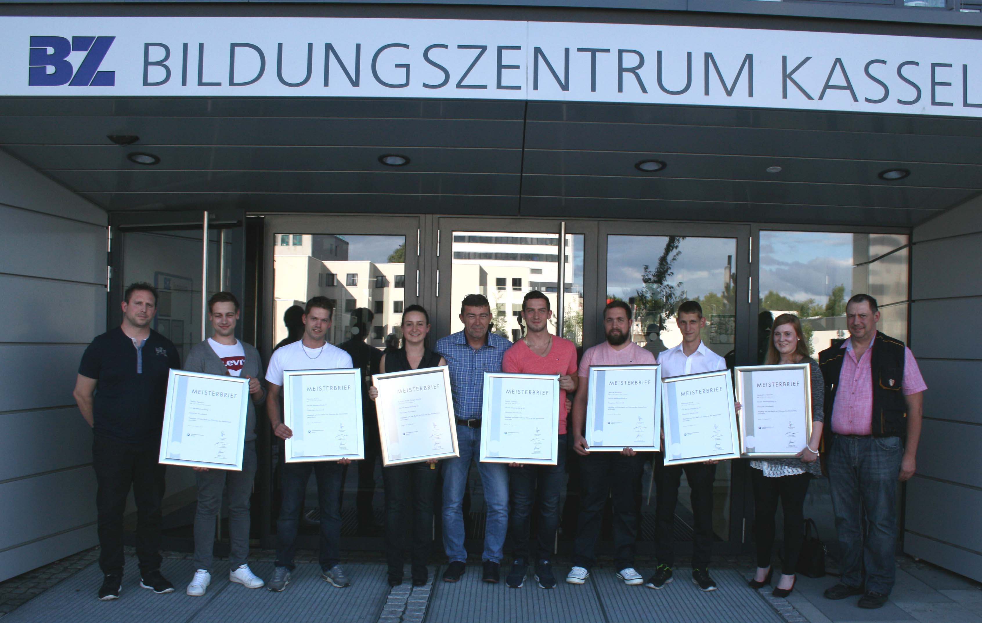 Sieben stolze Fleischerinnen und Fleischer schlossen alle Ausbildungsabschnitte erfolgreich ab und bestanden kürzlich Ihre einwöchige Meisterprüfung am Bildungszentrum Kassel. Weiteren sieben Teilnehmerinnen und Teilnehmern stehen jetzt noch die Ausbildungsabschnitte III und IV bevor. Die Meisterbriefe wurden feierlich vom Meisterprüfungsausschuss-Vorsitzenden Günther Diolda, dem stellvertretenden Vorsitzenden Konrad Hanses und von Cornelia Mündel-Wirz von der Handwerkskammer Kassel übergeben.