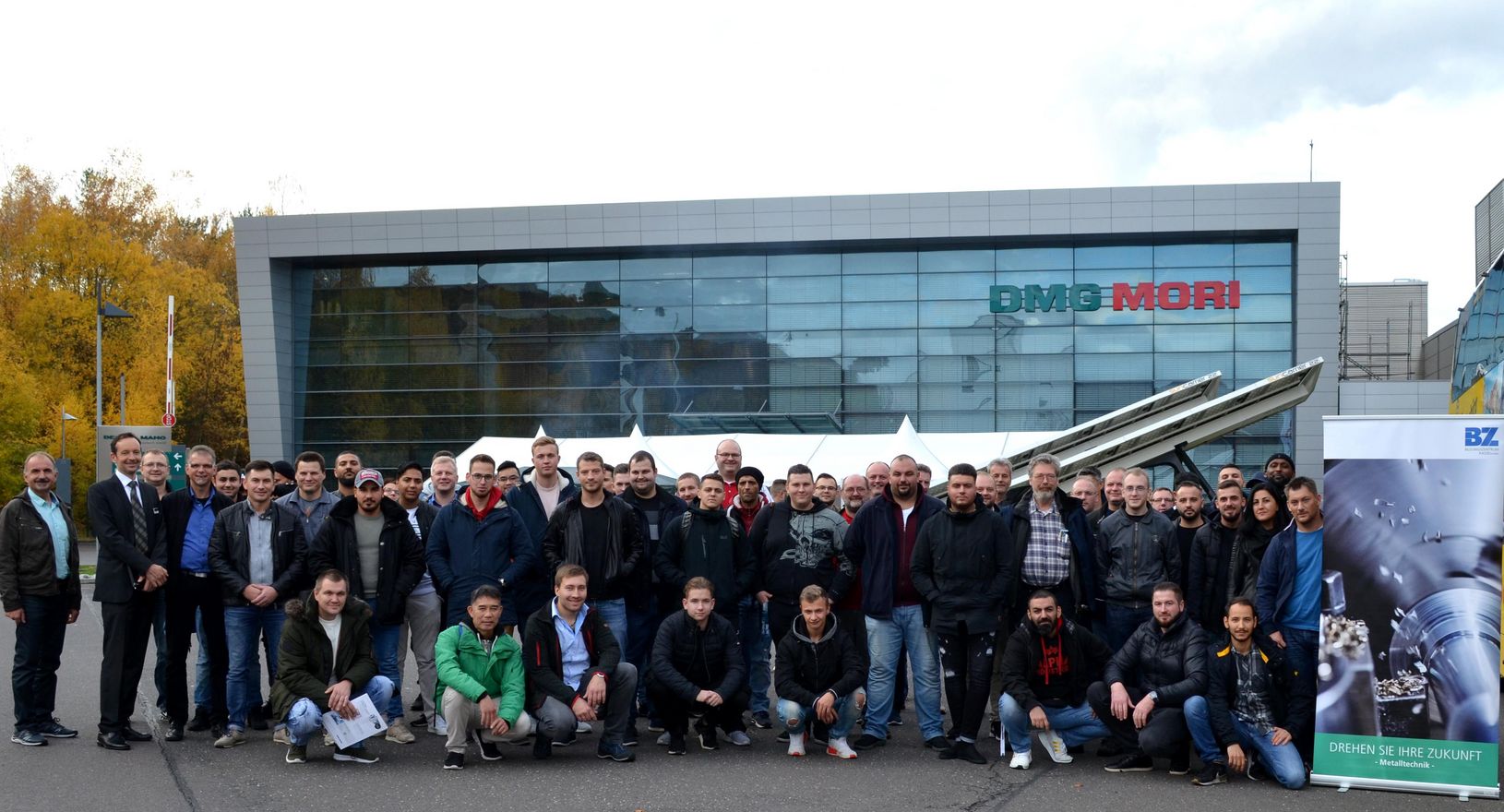 Auf der Hausmesse der Firma DMG MORI hatten über 60 BZ-Teilnehmer/-innen aus den Meisterkursen Metallbau und Feinwerkmechaniker, darunter auch Umschüler und Firmenschulungsteilnehmer/-innen, die Möglichkeit, neueste Innovationen und Trends im Bereich der Metalltechnik kennenzulernen. Dazu standen 21 Hightech-Maschinen und konventionelle Fräsmaschinen zur Besichtigung zur Verfügung. Experten der DMG MORI erläuterten die technischen Details.