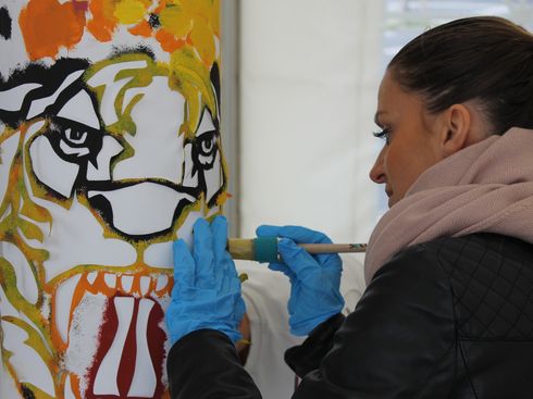 Neben vielen Mitmachaktionen für Groß und Klein, gab es jede Menge Informationen rund um das Handwerk in Nordhessen. Fragen zu Aus- und Weiterbildungsmöglichkeiten konnten unter anderem bei den AZUBIScouts geklärt werden. Wer sich zur Abwechslung mal den Wind durch die Haare wehen lassen wollte, konnte entweder die warme Luft bei den Friseuren genießen oder eine Runde mit dem Kart fahren. Wem das nicht reichte, der war im BZ3 herzlich zum Schmieden eingeladen, wo die Temperaturen deutlich angenehmer waren. Nach einer kurzen Aufwärmung konnte man mit den Dachdeckern Schieferherzen klopfen – auch planet Radio Moderatorin Boomchica Leni versuchte sich daran und schaute im Anschluss bei den Malern vorbei um eine Wand kunstvoll zu verzieren.