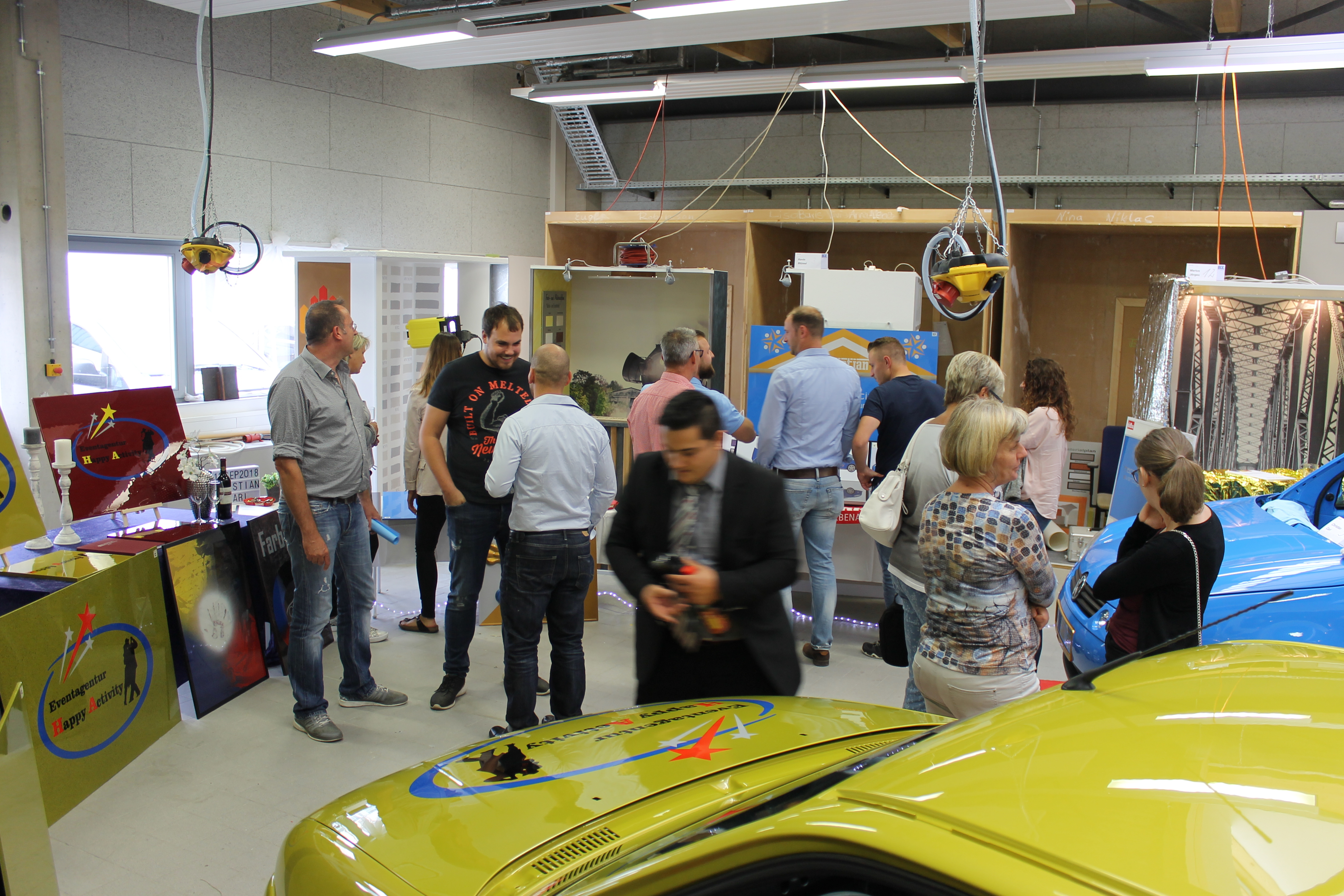 Ausgangspunkt der Meisterprüfung war die Umgestaltung einer fiktiven ehemaligen Lokhalle zu einer Eventhalle. Die Beauftragte fiktive Agentur bekam von den Fahrzeuglackierern passende Logos und besondere Fahrzeuglackierungen für die Dienstfahrzeuge, während die Maler- und Lackierer die Lokhalle samt Konzeption und Gestaltung u.a. mit Fototapeten herrichten sollten. Die unterschiedlichen Herangehensweisen und Ergebnisse kamen bei den Prüfern ausgesprochen gut an.