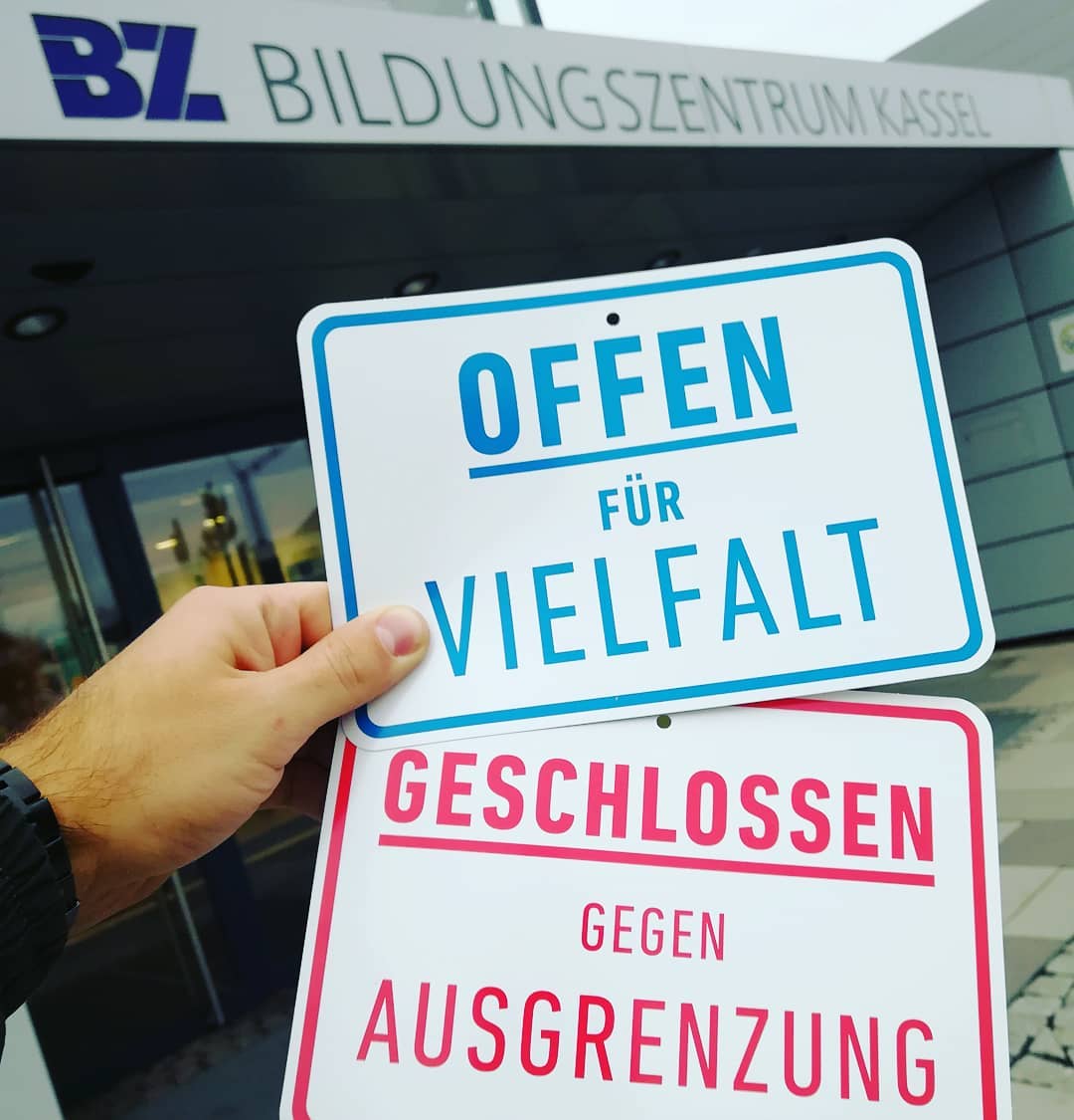 Seit gestern hängen an den Eingängen am BZ-Campus kleine Schilder mit klaren Botschaften. Hintergrund ist die Initiative mehrerer Unternehmen aus der Region Kassel, die ein Zeichen für Weltoffeneheit, Vielfalt und Toleranz setzen wollen.