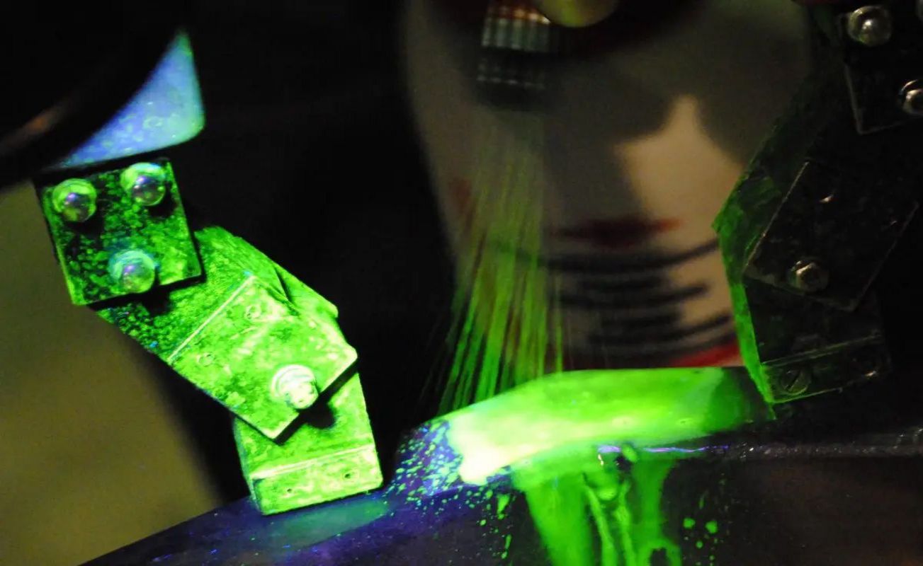 Bei der Eindringprüfung geht es vor allem um die Materialoberflächen, auf denen Risse, Bindefehler Überlappungen oder Poren visualisiert werden. Hier liegt der Prüfbereich im Bereich von tausendstel Millimetern.